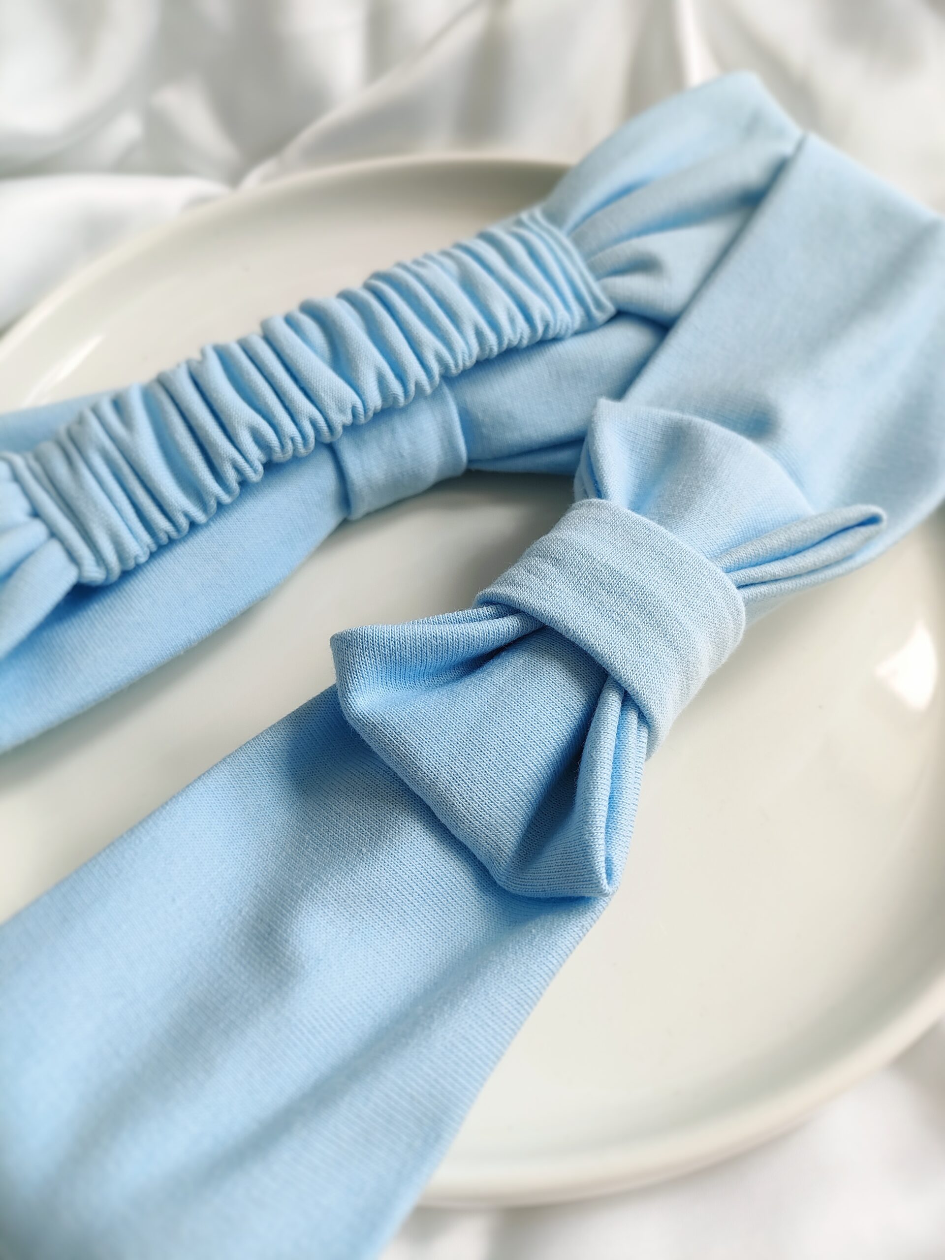 Bawełniana opaska z kokardą dla dzieci | błękitna
