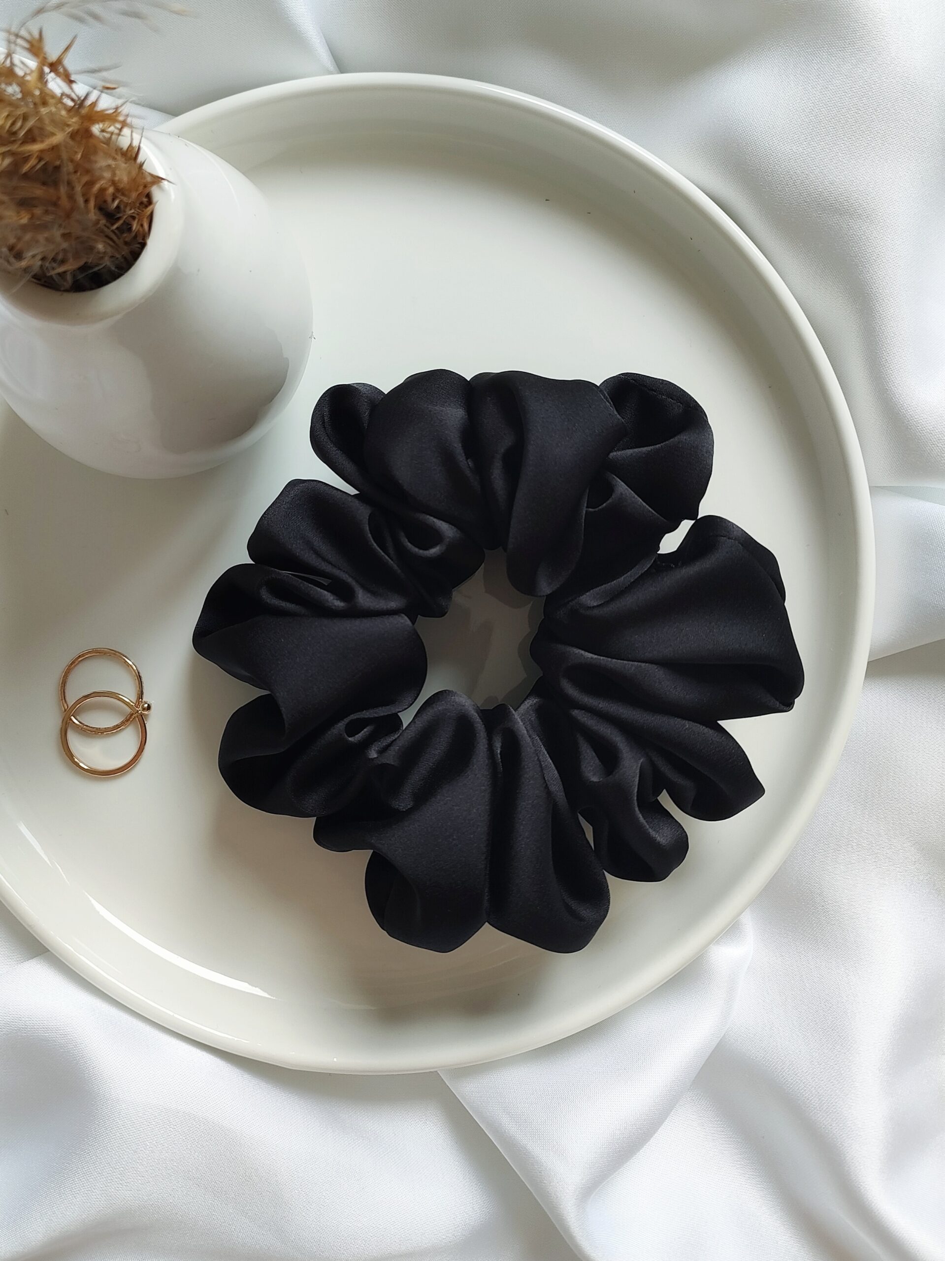 Napisz pierwszą opinię o „Gumka do włosów scrunchie satynowa duża | czarna”