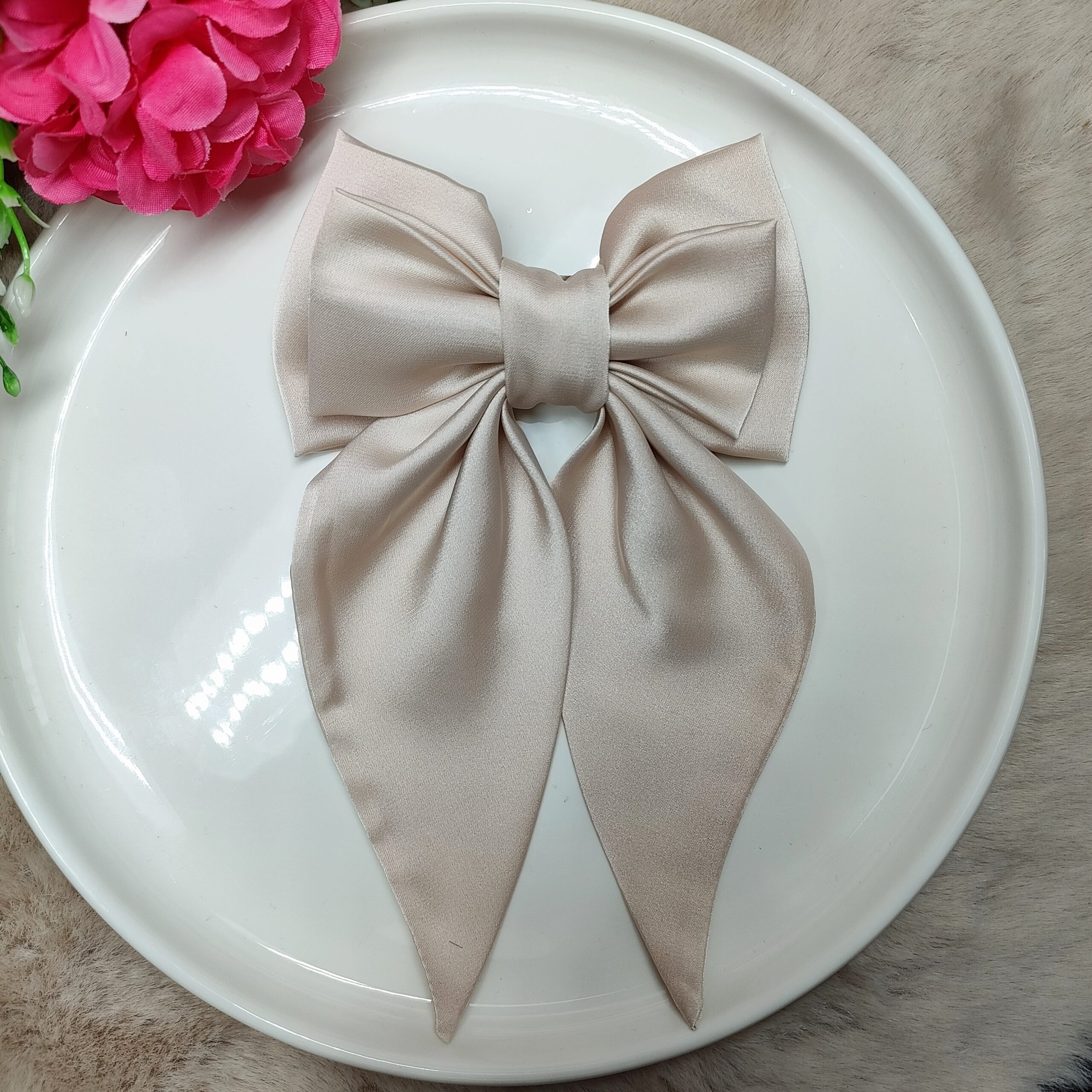 Napisz pierwszą opinię o „Kokarda do włosów satynowa delikatna | zimny beż”