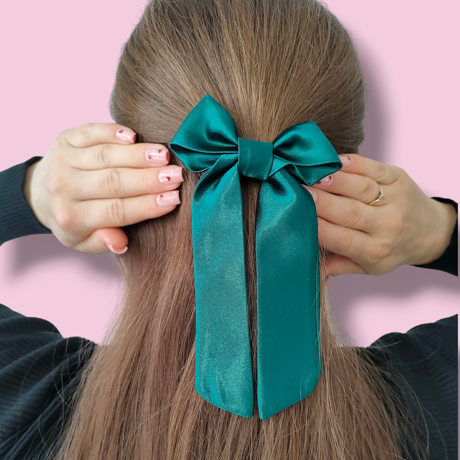 Elegancka kokarda do włosów wykonana z wysokiej jakości satyny z dodatkiem lycry, o delikatnym, subtelnym połysku. Minimalistyczny design sprawia, że doskonale pasuje zarówno do codziennych stylizacji, jak i na bardziej eleganckie okazje.
