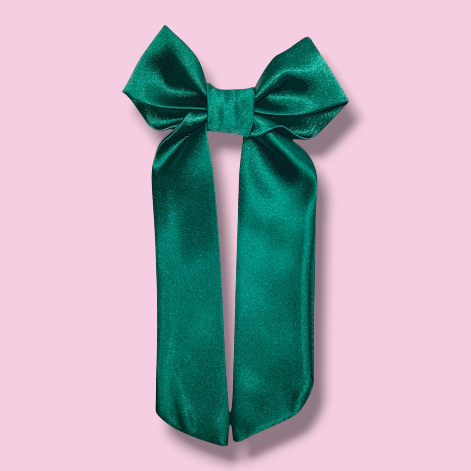 Kokarda do włosów satynowa na spince automatycznej | zielona