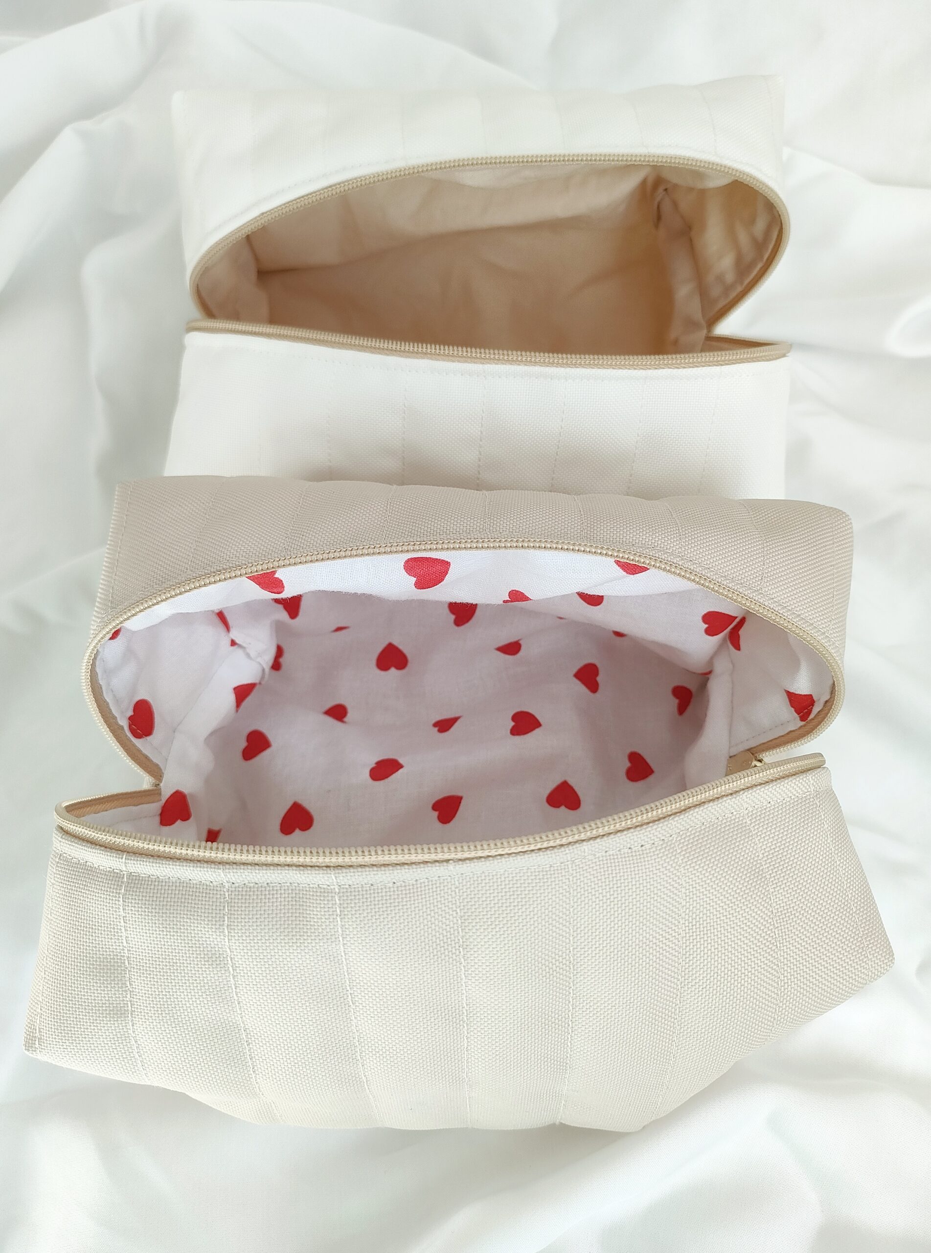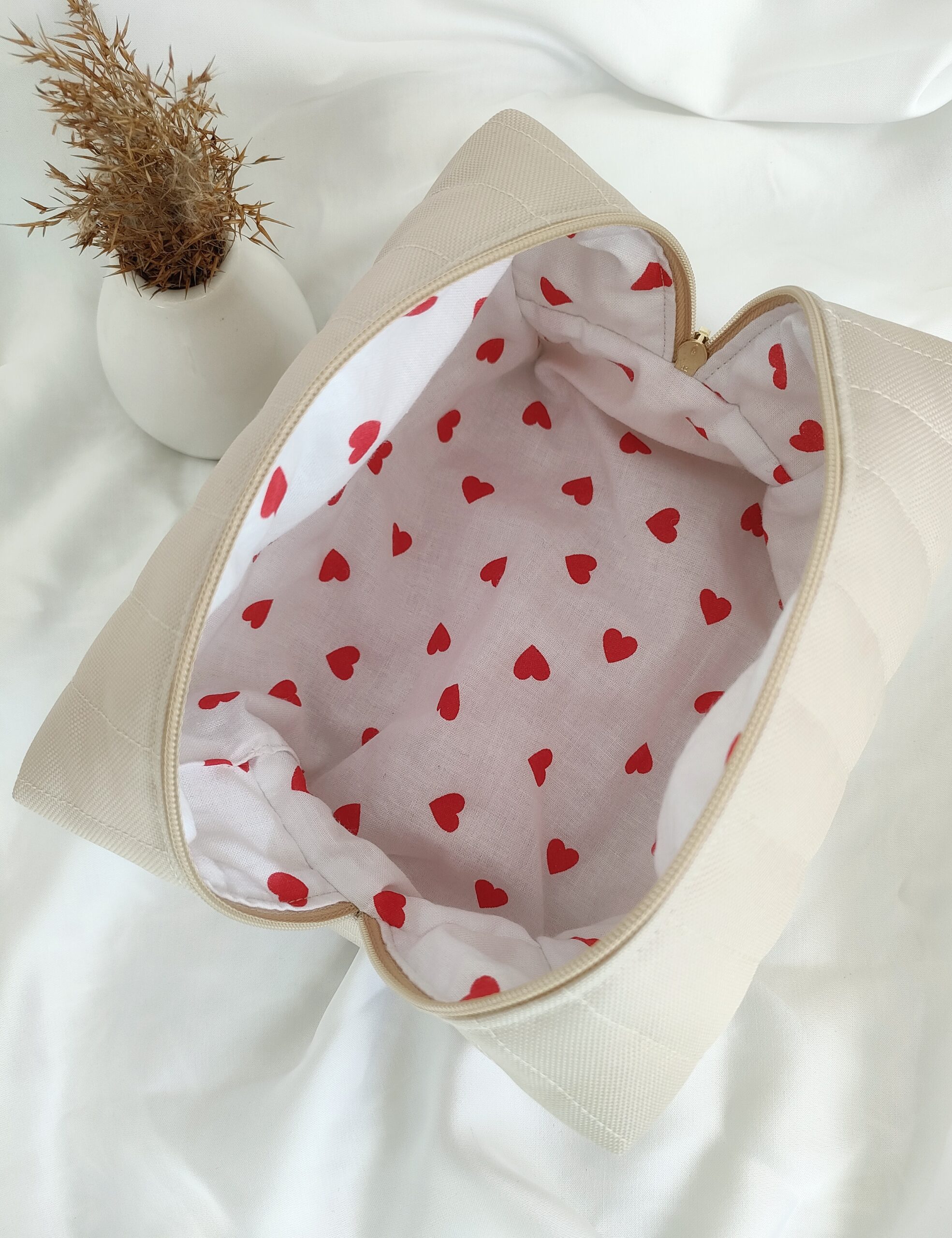 Kosmetyczka typu box | beżowa środek serduszka