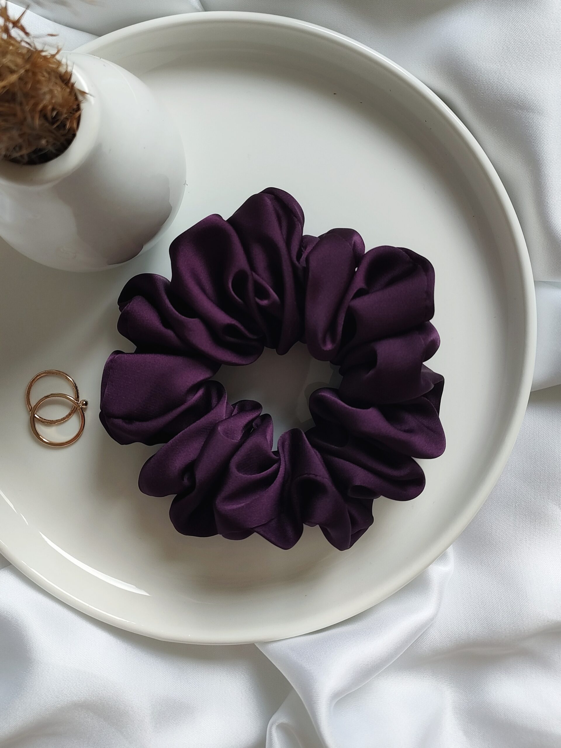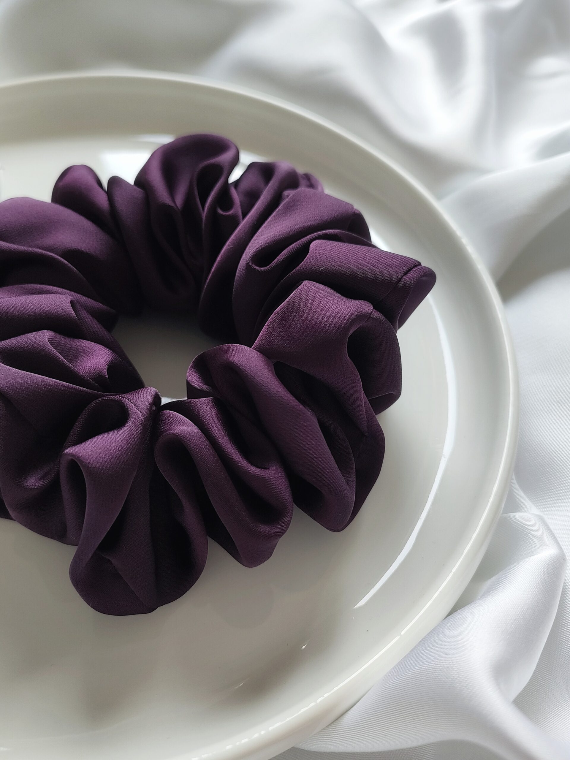 Napisz pierwszą opinię o „Gumka do włosów scrunchie satynowa duża | śliwka”